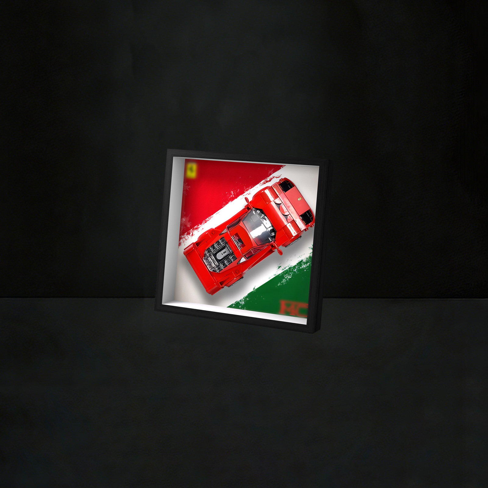 The LEGO® Speed Champions Ferrari F40 (76934) is a tribute to one of the most iconic supercars in history. This 8-inch square aluminum alloy display frame is specifically designed to elevate your build into a professional 3D wall exhibit. By transitioning the F40 from a shelf to a vertical gallery, you highlight its legendary wedge-shaped silhouette and massive rear wing, transforming the model into a sophisticated piece of automotive art while reclaiming valuable surface space.