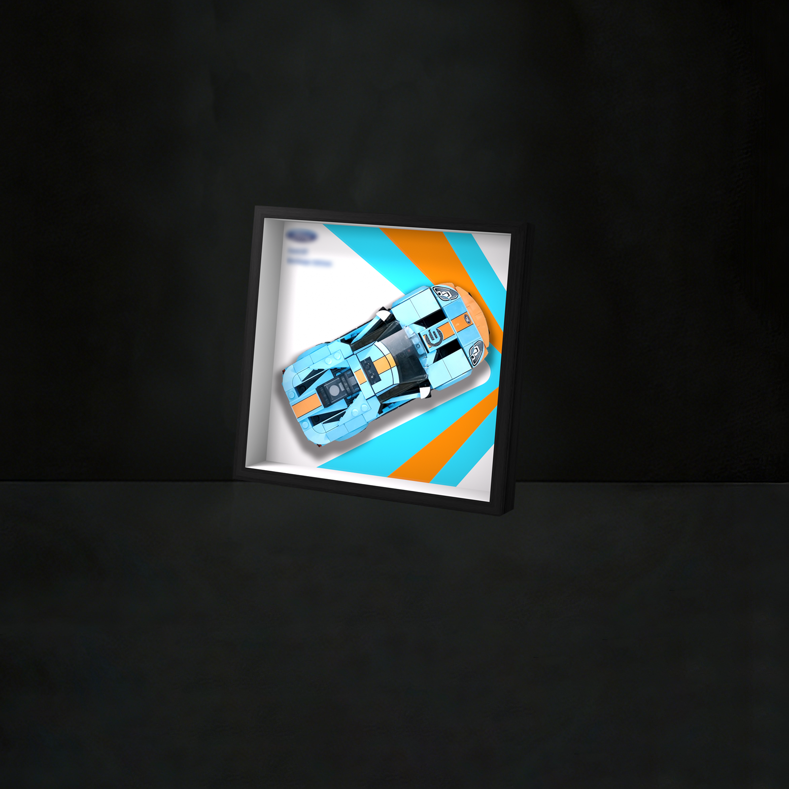The LEGO® Speed Champions Ford GT Heritage Edition (from set 76905) celebrates the legendary racing history of the Blue Oval. This 8-inch square display frame transforms your build into a professional 3D wall exhibit. By mounting the Ford GT vertically, you create a sophisticated gallery-style display that highlights its ultra-modern supercar silhouette and iconic heritage livery while reclaiming valuable surface space.