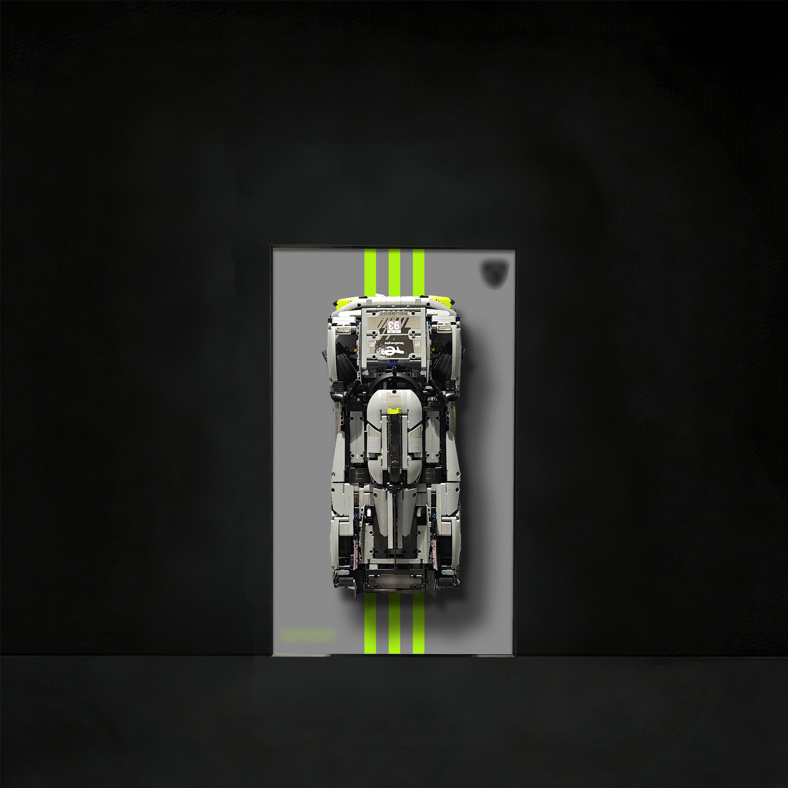 This Display Frame utilizes a minimalist solid-color backdrop designed to emphasize the unique dark gray and kryptonite lime livery of the Peugeot hypercar. Using state-of-the-art HD UV printing technology, the frame features a high-fidelity Peugeot Sport logo and official branding for a refined, automotive aesthetic that is both scratch-resistant and vibrant. Crafted from high-grade aluminum alloy, the frame is exceptionally easy to install and provides a steady and firm mount for your model. The high-quality surface is durable and easy to clean, ensuring your LEGO 42156 remains a pristine focal point in any modern interior.