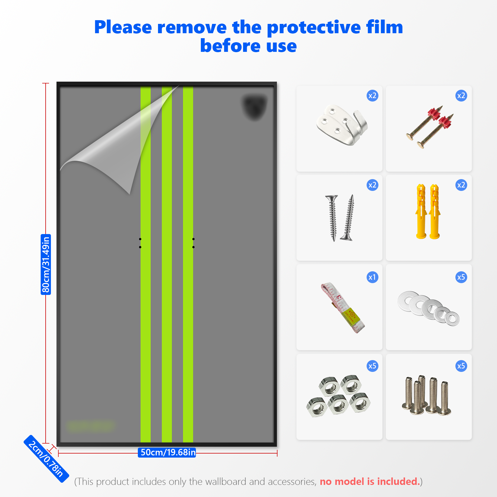 The Display Frame is custom-fit for the LEGO® Technic™ 42156 model. It measures 80cm in height, 50cm in width, and features a slim 3.5cm depth for a professional gallery profile. Constructed from premium aluminum alloy and high-density backboard materials, the product includes a comprehensive installation kit with all necessary high-strength hardware, including expansion bolts and specialized hooks, for a seamless and secure setup on any firm wall surface.